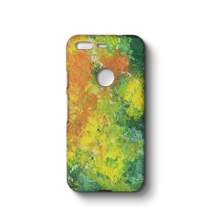 The Polycarbon case is made with polycarbonate; the print covers even the sides. They are plastic, matte finished, feels great. #Pixel